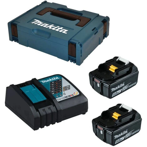 Die Akkus haben eine Stromstärke von 5 Ah. Das Schnellladegerät ist mit einer Kapazitätsanzeige ausgestattet, somit kann beobachtet werden, wie weit die Ladung des eingesteckten Akkus vorangeschritten ist. Es muss beachtet werden, dass eine Akkuspannung von 18 V nicht für jedes Gerät geeignet ist. Hier empfiehlt es sich, sich genau an die Artikelnummern zu halten. Die Lieferung erfolgt im Makpac Gr. 1 mit zwei Akkus (1850B) und einem Ladegerät (DC18RC).
