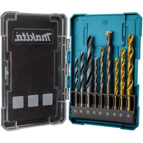 9-teilig Bohrer Sortiment für Holz, Metall und Mauerwerk Das Makita Bohrer Sortiment ist geeignet für Holz, Metall und Mauerwerk. Das Bohrer Sortiment befindet sich in einer praktischen Aufbewahrungsbox.