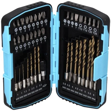 – 14x Bohrer ( 2x 1 / 1x 1,5 / 1x 2 / 1x 2,5 / 1x 3 / 1x 3,2 / 1x 3,5 / 1x 4 / 1x 4,5 / 1x 4,8 / 1x 5 / 1x 5,5 / 1x 6 mm )