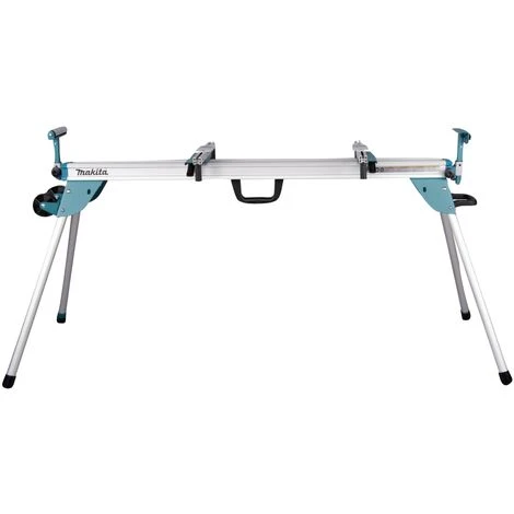Das DEAWST07 Untergestell von Makita verfügt über einen verbesserten Befestigungsmechanismus was auf eine Länge von 3,83 m ausgefahren werden kann. Ein Standfuß lässt sich zum ausgleichen von Unebenheiten im Boden in der länge verstellen, sodass das Untergestell festen halt für das zu sägende Material bietet. Im zusammengeklappten Zustand verfügt das 18 kg leichte Gestell über ein kompaktes Transportmaß und kann mit der Rolle einfach hinterhergezogen werden, oder an dem Tragegriff getragen werden. Die Auflagen lassen sich auf beiden Seiten ausziehen, einseitig ist eine Rolle zum leichteren bewegen des Werkstücks montiert. Makita ist ein führender Hersteller für Elektrowerkzeug, der sich vor allem durch seine lange Tradition und hohe Verarbeitungsqualität auszeichnet.
