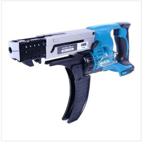 Der Makita DFR 550 18 V Akku-Schnellbau-Magazinschrauber überzeugt mit vielen Einstellungen, die Ihnen ein schnelles und präzises Arbeiten ermöglichen. Der Handgriff mit Gummipolster sorgt für sicheren Halt, die extralange Schraubenfürhung verhindert das verkanten des Schraubengurtes und ermöglicht so ein zügiges Arbeiten. Der Makita DFR 550 Magazinschrauber verfügt über eine geräuschlos abschaltende Kupplung und die hohe Drehzahl des Motors garantiert einen effizient Arbeitsfortschritt.