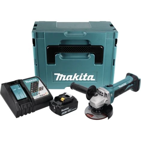 Der Makita DGA 452 ist ein handlicher Akku Winkelschleifer, der mit kraftvollem Motor überzeugen kann. Die Maschine verfügt über eine Wiedereinschaltsperre und eine LED Lampe, die vor Überlastung des Motors warnt. Die Kohlebürsten sind sehr einfach von außen wechselbar und die gummierten Handgriffe sorgen für optimales Handling und sicheren Halt beim Arbeiten. Der leistungsstarke BL 1850 B Akku verfügt über eine LED Ladestandsanzeige. Mit dem Akku-Kombinations-Programm von Makita können Sie zudem Ihr Sortiment durch weitere Akkus und Maschinen der Li-Ion 18V Serie systematisch erweitern und die Produkte beliebig kombinieren. Im Makpac kann die Maschine gut transportiert und verstaut werden.