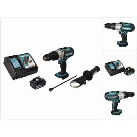 Der Makita DHP 451 ist ein 18 Volt starker, Li-Ion betriebener Akku Schlagbohrschrauber mit einem 3-Gang Vollmetall-Planetengetriebe und abschaltbarem Schlagwerk. Das Drehmoment lässt sich in 16 Stufen und einer separaten Bohrstufe präzise einstellen. Die DHP 451 besitzt zudem einen Rechts-/Linkslauf, einen Zusatzgriff für einen besseren Halt und einen Tiefenanschlag. Die integrierte LED-Leuchte ermöglicht zudem das Arbeiten an schlecht beleuchteten Arbeitsplätzen.