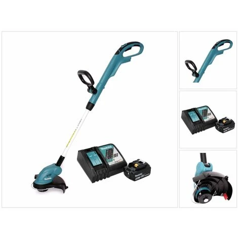 Der kompakte und handliche Akku-Rasentrimmer DUR 181 von Makita eignet sich hervorragend für Arbeiten am Haus und Garten. Das Gerät verfügt über einen teleskopierbaren Schaft mit einer Arbeitslänge von max. 180 mm und einen um fünf Stufen neigbaren Schneidkopf. Der Mähfaden lässt sich spielend einfach durch Drücken des Spulenknopfs gegen den Boden (Tap & Go) nachführen und der Schneidkopf lässt sich um 180° drehen, zum Abstechen von Kanten. Mit dem Rundgriff lässt sich der Makita DUR 181 sehr komfortabel bedienen.