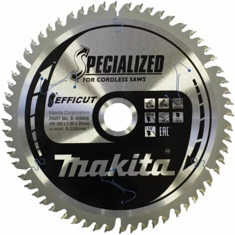 MAKITA EFFICUT Sägeblatt 165×20 mm, 60 Zähne | Hersteller-Nr.: B-69864 | EAN: 0088381549462 | • speziell geschärfte Zahnköpfe