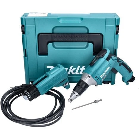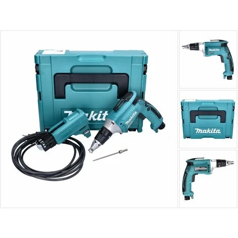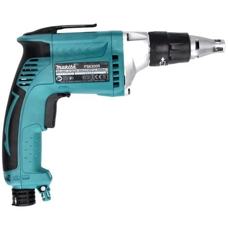 Die Firma Makita bietet hier mit dem FS 6300 RJX2 einen kompakten und ergonomischen Schraubendreher mit Tiefenanschlag für die schnelle Montage von Gipskartonplatten auf Metallprofilen oder Holzrahmen. Durch den enthaltenen Adapter, können Bandschrauben, von 25-55 mm länge, benutzt werden. Die Schraubtiefe lässt sich schnell und einfach einstellen, wodurch ein optimaler Sitz der Schraube garantiert wird. Die Automatische Kupplung sorgt für einen minimalen Verschleiß des Bits. Das robuste Metallgehäuse ermöglicht eine optimale Wärmeabgabe. Durch die LED Arbeitslampe hat man auch an dunkleren Orten eine super Sicht auf die Arbeitsfläche. Das Gerät ist serienmäßig mit einem auswechselbaren Kabel ausgestattet, welches sich mit dem Quicklock System koppeln lässt. Makita ist ein führender Hersteller für Elektrowerkzeuge aller Art, der sich vor allem durch seine lange Tradition und seine hohe Verarbeitungsqualität auszeichnet.