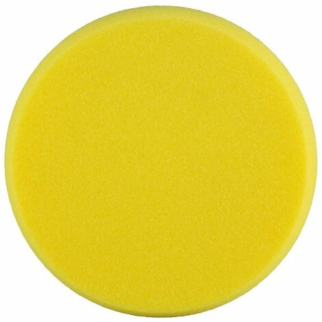 Die Schaumstoffdicke beträgt 31 mm. Der gelbe Klett-Schwamm mit 190 mm Durchmesser eignet sich für Poliervorgänge, zum Ausarbeiten von Kratzern und zur Auffrischung des Lackes.