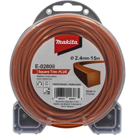 Der speziell für Akku-Sensen und -Trimmer entwickelte Mähfaden “Square Trim” von Makita besitzt eine hohe Reißfestigkeit und eignet sich niedriges und hohes Gras.