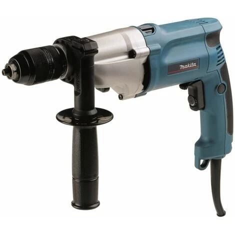 Profi-Maschine für den Baustelleneinsatz Geringe Vibrationen Super schlankes Gehäuse Sehr gute Bohrleistung durch optimal abgestimmtes Schlagwerk Sicherheits-Rutschkupplung 2-Gang-Getriebe in robustem Getriebegehäus aus Aluminium-Druckguß Schlag abschaltbar Schnellspannbohrfutter 43-mm-Euro-Spannhals Lieferumfang: MAKPAC Gr. 1. Tiefenanschlag. Seitengriff